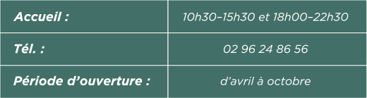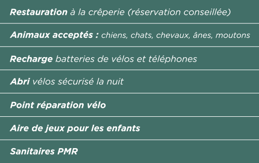 Adossée à la crêperie et à proximité de l’abbaye de Bon-Repos, du canal de Nantes à Brest et du plus grand lac de Bretagne,
